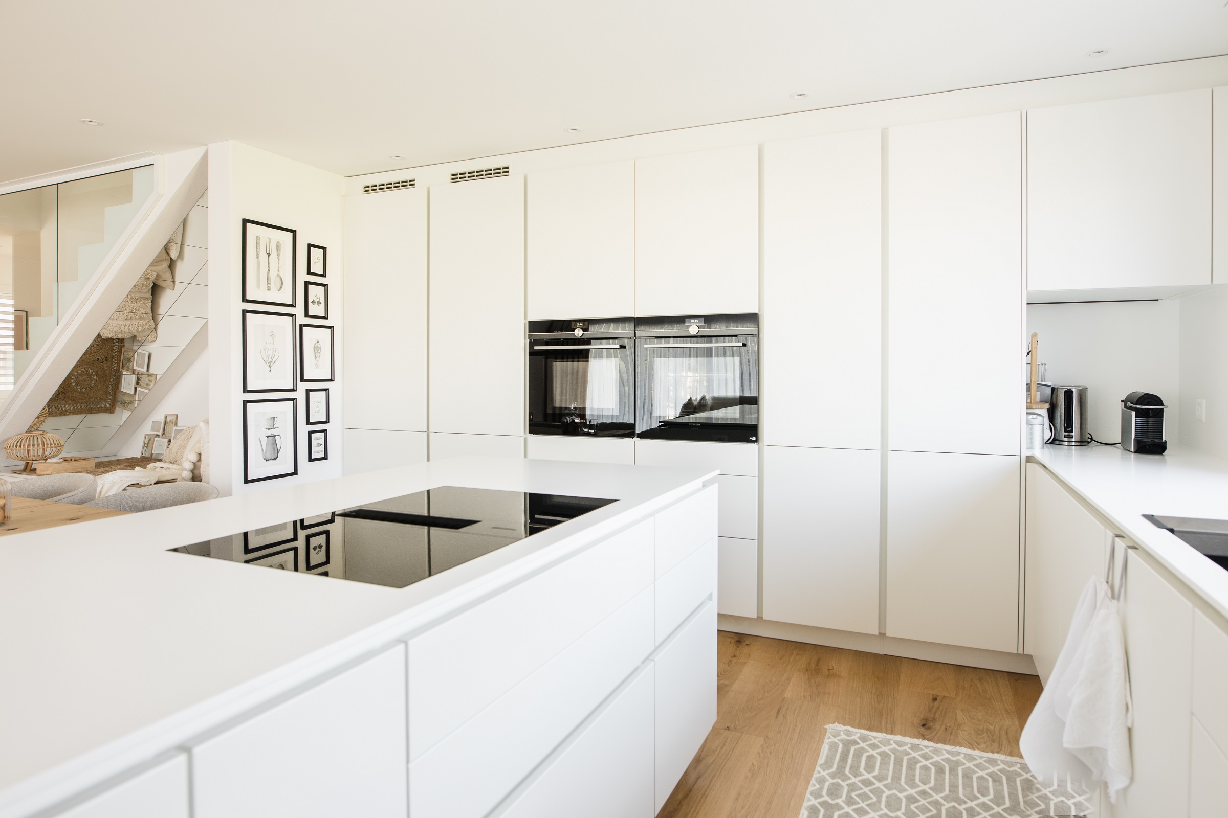 Als wir unsere Pläne im Familien- und Bekanntenkreis gezeigt haben, meinten viele, muss die denn so gross werden?! Doch für uns war immer klar, dass wir genügend Stauraum brauchen für eine Küche, die nicht nur gut aussieht, sondern auch wirklich funktional ist. Wir hatten keine Lust mehr auf das Verstauungs-Tetris, das man in den meisten Mietküchen spielen muss; das ständige Ein- und Ausräumen, um an den Gegenstand zu kommen, den man eigentlich braucht. Die Küche, die wir kreiert haben, bietet genau dies. Mit einem Handgriff haben wir alles, was wir brauchen. Und die Küche fügt sich wunderschön in den Wohnraum ein. Alles ist offen und harmoniert - mit klaren Linien in Schattierungen von Weiss mit Akzenten von warmem, hellem Holz. Wir sind happy. Das einzige klitzekleine Detail, dass Elmire als Pflegefachfrau ändern würde, ist ein Fusspedal beim Abfalleimer. Ansonsten sind wir wunschlos glücklich. Wir haben die Küche unserer Träume mit unserem Budget realisiert. Was will man mehr...