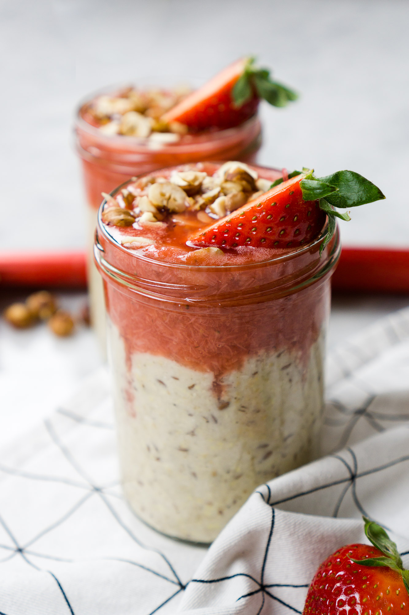 Obwohl der Rhabarber botanisch zu den Gemüsesorten zählt, eignet er sich als Zutat für süsse Speisen und harmoniert bestens mit roten Beeren und anderen Früchten. Für dieses Frühstücksrezept kombiniere ich ihn mit Erdbeeren. Der Klassiker im Frühling schlechthin.