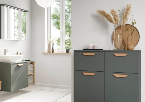 Wir erweitern unser Sortiment um Möbel für das Badezimmer und den Wohnbereich, die einheitlich gestaltet werden und mit denselben Fronten und Farben wie eure Traumküchen ausgestattet werden.